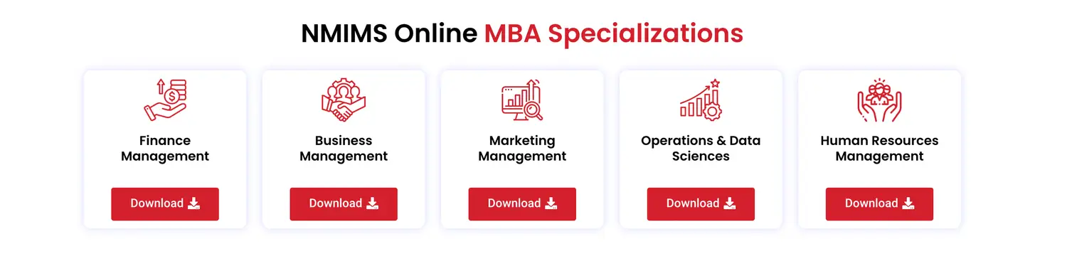 Get ready to take your career to the next level with NMIMS CDOE’s MBA program. Our five contemporary specialisations are designed for working professionals like you, offering flexible learning options from expert faculty. Gain the skills and knowledge needed to succeed in today’s competitive business landscape. Enrol now to transform your future.